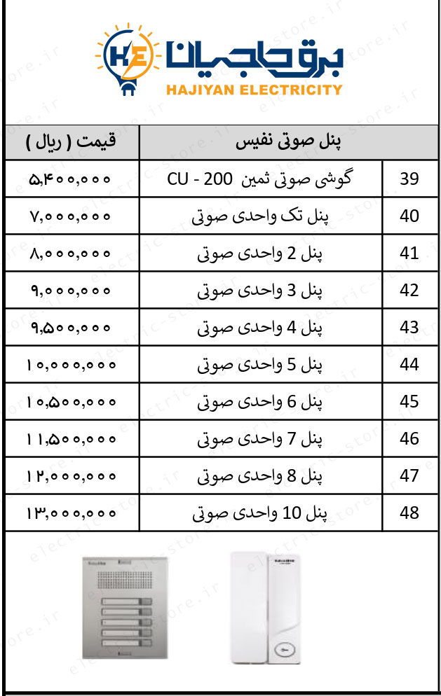| 19 | پنل صوتی 2 واحدی | 8,000,000 |